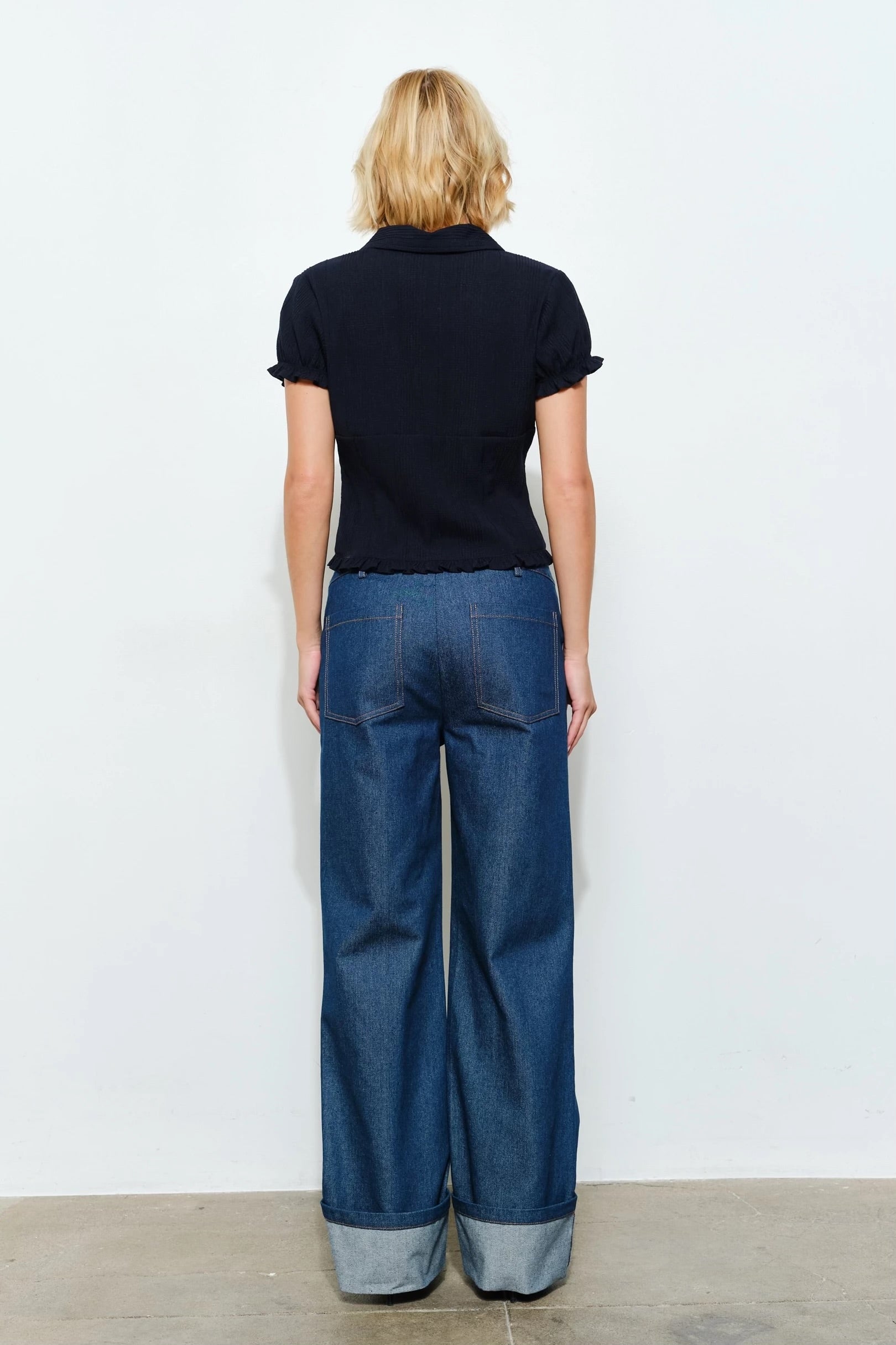 - Collared neckline with subtle ruffle detailing