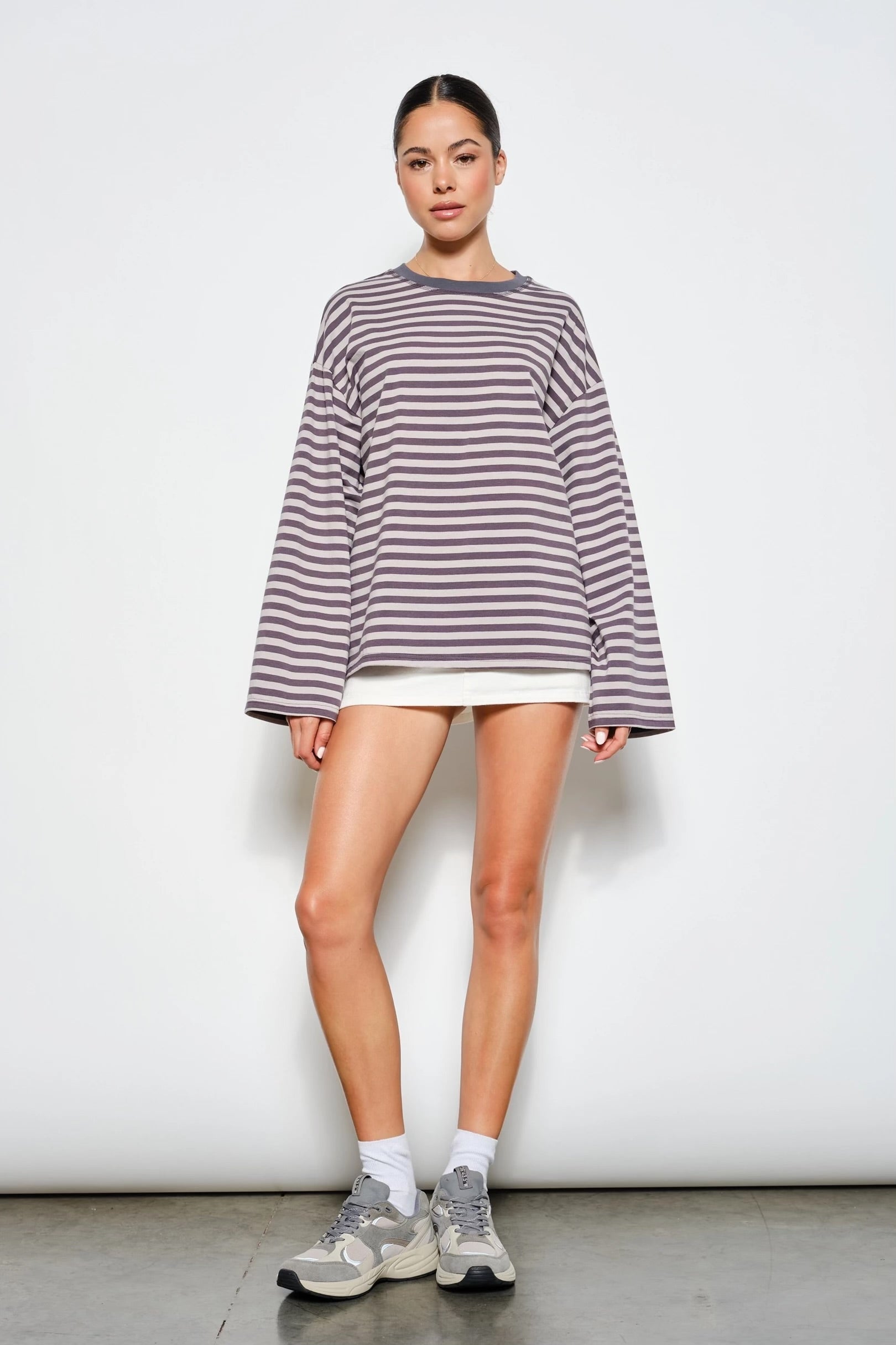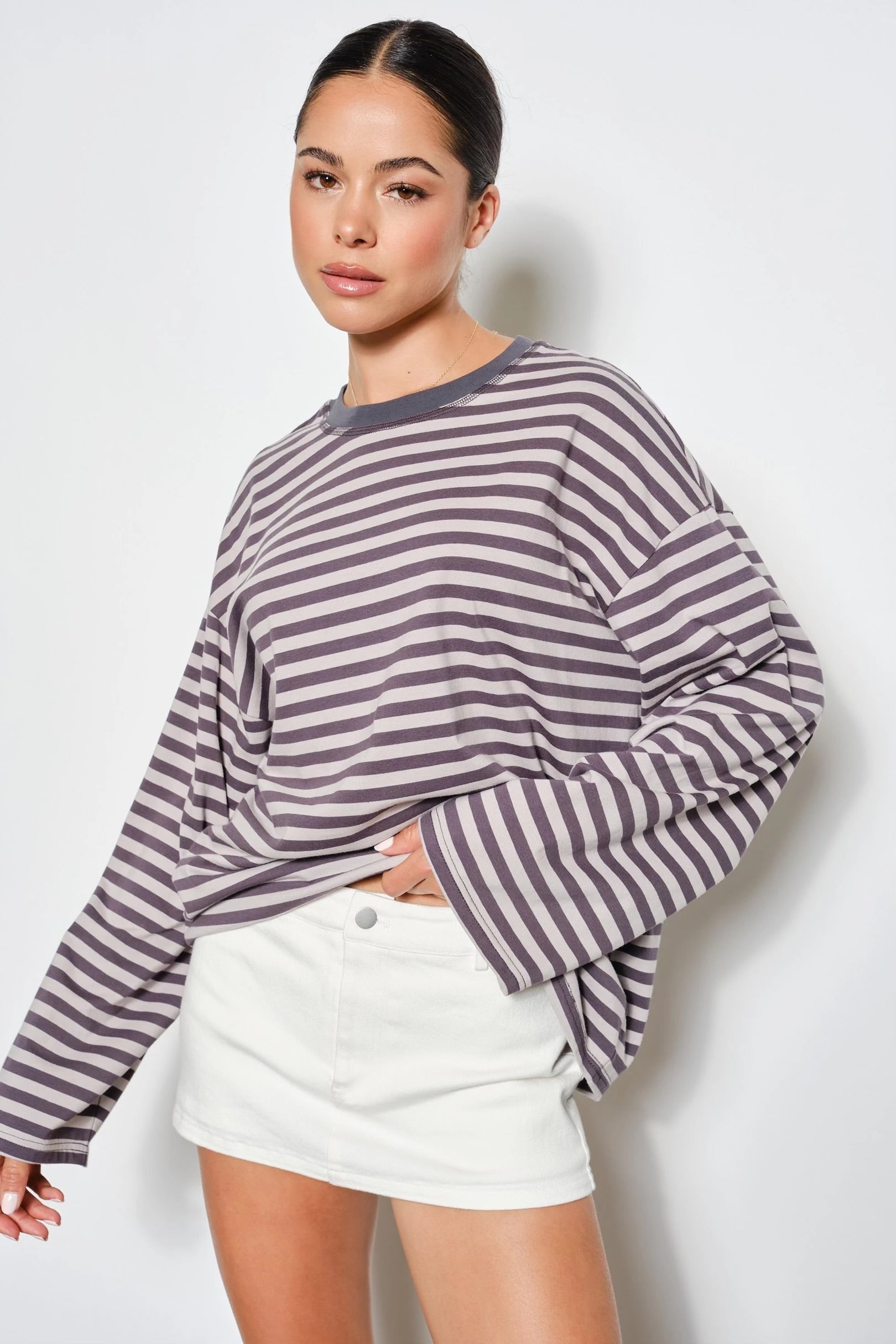Easy, effortless, and made for everyday wear — the Off Duty Striped Long Sleeve is the kind of staple you’ll reach for on repeat. Designed with a relaxed, slightly oversized fit and finished with a contrasting neckline, this striped long sleeve offers a laid-back look that still feels put together. Crafted from a soft, breathable cotton blend with stretch, it’s perfect for layering or wearing on its own for an off-duty vibe.