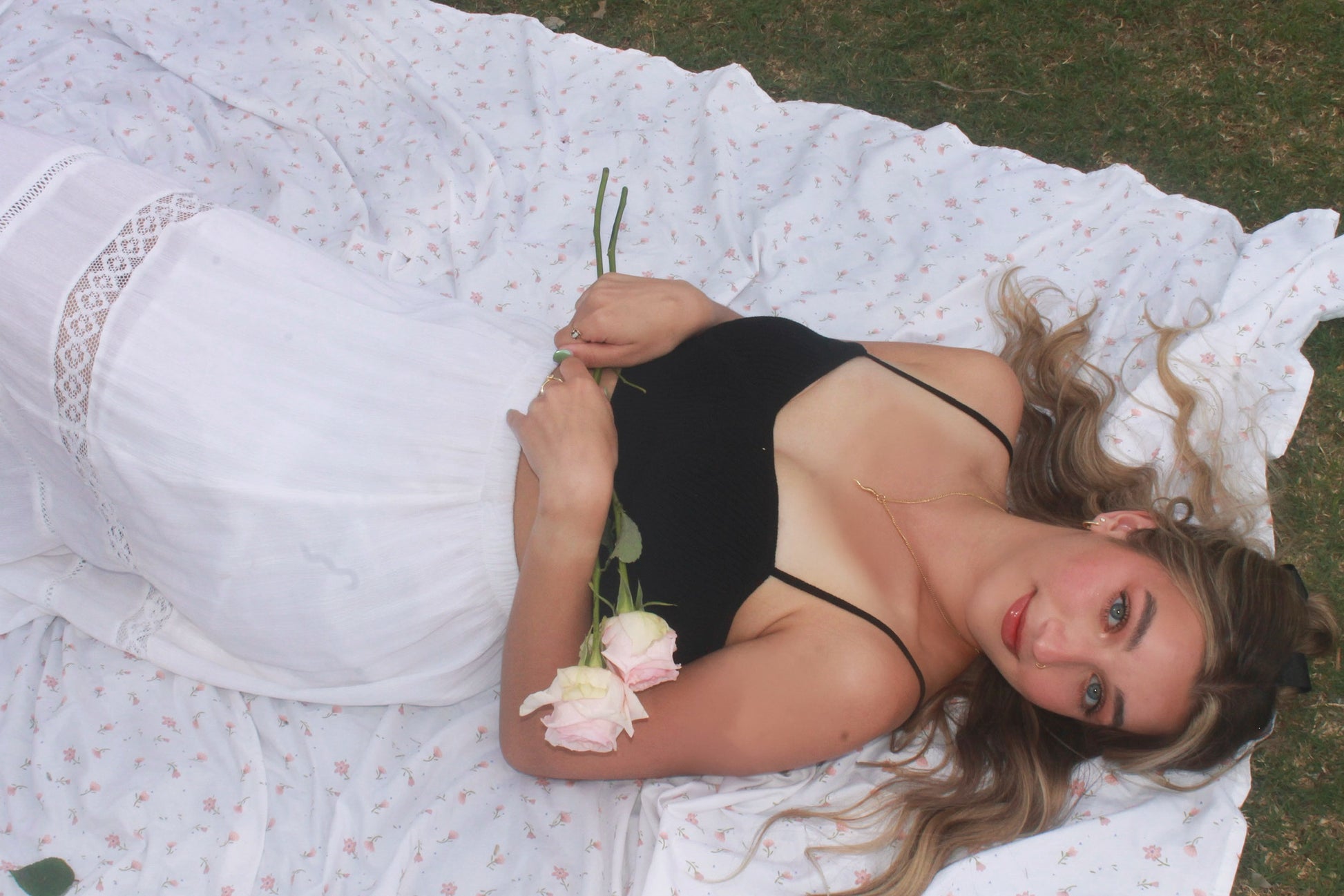 Spaghetti non-adjustable straps, knit material, bustier detail, crop top