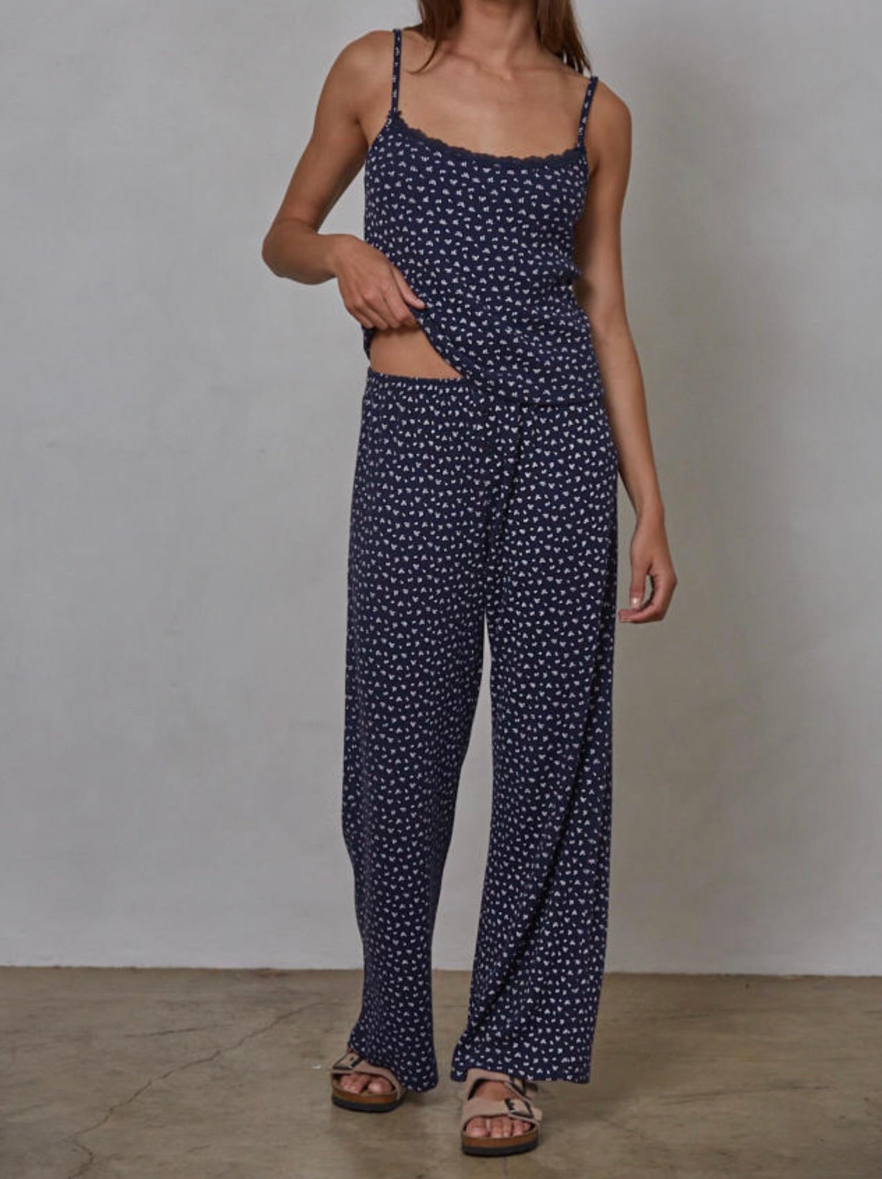 Cozy meets cute in our Sweet Waffle Pants — the ultimate lounge essential you’ll never want to take off. Made from 100% cotton with a soft waffle-knit texture, these high-waisted pants feature a subtle navy floral print, adjustable drawstring waist, and wide-leg fit for all-day comfort. Pair with our matching Sweet Waffle Cami for an effortlessly dreamy set.