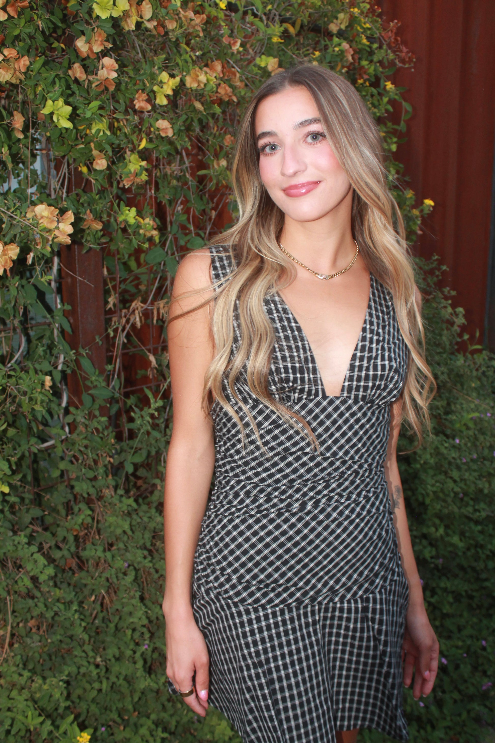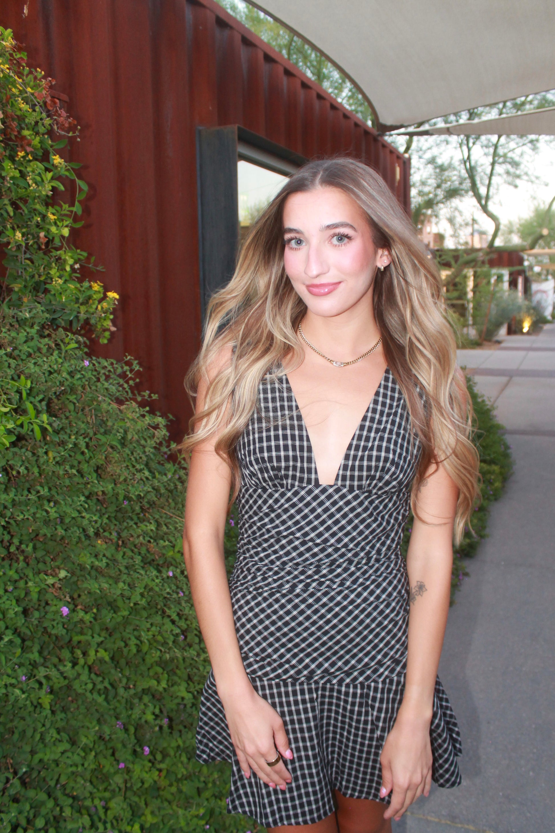 Turn heads in our Checkmate Mini Dress — a modern twist on classic plaid. This flirty mini features a deep plunging neckline, flattering ruched waist, and flared hem that moves with you. Perfect for date nights, rooftop drinks, or your next girls’ night out.